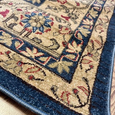 This is a beautiful, quality rug. But…the photo shows a more muted, neutral coloring. It’s actually a more vibrant blue (hence the descriptor “navy”). I took a chance on it because of the photo. It’s lovely but doesn’t fit our room. If you want navy and warm tan, it’s for you. I took photos that I hope do a better job showing the actual color.would have given 5 stars for quality if the photo hadn’t been misleading.