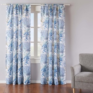 The Mahina drape panel complements the Levtex Home Mahina collection. This is the perfect accessory for any room in your house. Sized at 55x84in., this comes as a pair and features a detailed toss of aquatic plants in shades of blue, taupe, and white. Made from 100% cotton, the Mahina decorative curtains are easy to care for. These come with a rod pocket ready for installation.