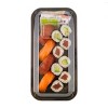 - Convenient, reclosable container with built-in sauce well in the lid for soy sauce or wasabi. Easy, mess-free condiment dipping!