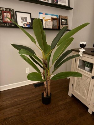 [This review was collected as part of a promotion.] I recently received this artificial banana plant, and I’m absolutely thrilled with how realistic it looks! The leaves are vibrant and have a natural sheen, while the sturdy base and “trunk” give it a lifelike appearance. It’s a great size and makes a bold statement in my kitchen, as seen in the photo. The quality is excellent for the price—sturdy construction and easy to set up right out of the box. This faux plant is perfect for adding greenery to spaces where maintaining a real plant isn’t feasible. I love how it instantly elevates the decor and adds a tropical vibe to my home. Highly recommend it to anyone looking for a low-maintenance yet beautiful addition to their space!