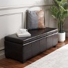 Enhance your living space with the maiden tufted storage bench large brown. This is more than just a bench; it is a versatile piece that complements any room with its rich brown shade and elegant design. Crafted from birchwood and bicast leather, it offers both style and functionality. The tufted top opens to reveal ample storage space, making it a practical addition to your home. Whether placed at the foot of your bed or in your entryway, this bench provides a perfect spot to sit and store your essentials. Its spacious interior keeps your items organized, while the exterior adds a touch of sophistication. Transform your home with the beauty and utility of this stunning storage bench.