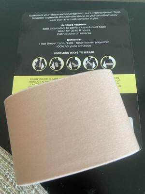 Limitless Tape from Maidenform is a skin safe body tape that can be used under even the most revealing styles. This tape allows for customized coverage under any neckline. Use one, two or three long strips per breast to achieve your desired support and shape under any garment.