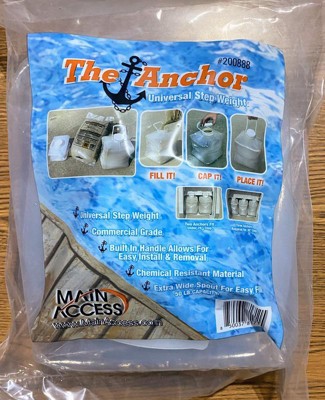 The Anchor Universal Step Weight is the perfect solution to anchoring your pool steps safely, easily, and mess-free! Just pop up the container and fill with sand or pea gravel. Then use the handle to lift it into the water and submerge in the back of your pool steps. No more floating or wobbling steps, no more messy sand bags or cement blocks, or algae problems! Use 2 for 26" steps and 3 for 36" steps. Holds up to 50 pounds of sand.