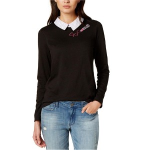 maison Jules Womens Bow-Stripe Collared Pullover Blouse