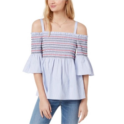 maison Jules Womens Cold Shoulder Eyelet Pullover Blouse
