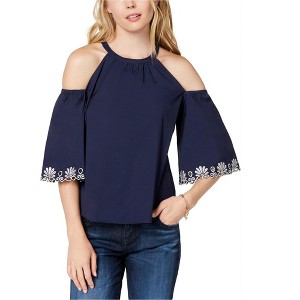 maison Jules Womens Cold Shoulder Eyelet Pullover Blouse - 1 of 1