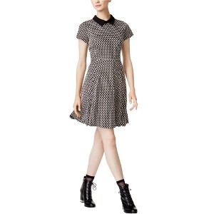 A: The dress features a spread collar design for a stylish look.
