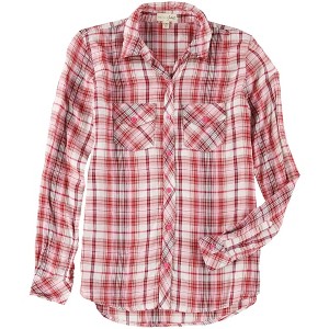 maison Jules Womens Plaid Button Up Shirt