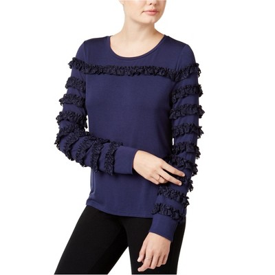 maison Jules Womens Ruffled-Trim Basic T-Shirt