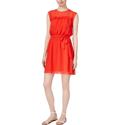A: The dress has a polka dot pattern, which adds a playful element to its appearance.