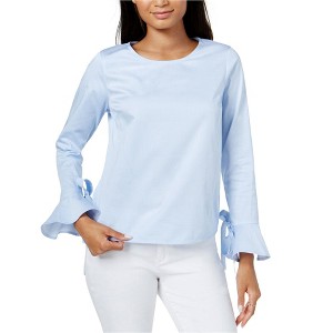 maison Jules Womens Striped Bell-Sleeve Pullover Blouse