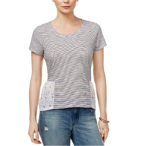 maison Jules Womens Striped Lace Trim Basic T-Shirt