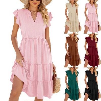 • STYLISH ACCENTS: The dress is embellished with a button closure, waist tie detailing, and ruffles at the chest. These accents add a chic touch to the dress.