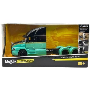 The year of manufacture is 2020 and it belongs to the transport series. Whether you're a fan of trucks or just appreciate well-made models. This Maisto Mack Anthem is a must-have. 1:64 Design Custom Rigs Mack Anthem Trucks Black Green. Real rubber tires, Have opening hoods, Diecast metal body with plastic parts.