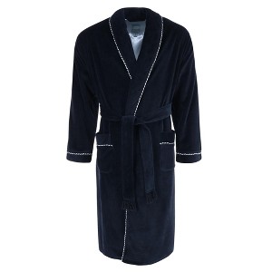 Take it easy in this timeless smoking jacket robe perfect for lounging around the house. The silky smooth lining is smooth against the skin and the plush velour provides ultimate comfort. Featuring contrast robe piping for a handsome look and two patch pockets for convenience. Made of 75% Cotton, 25% Polyester