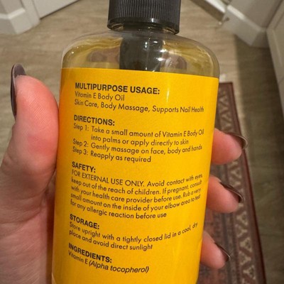 [This review was collected as part of a promotion.] This vitamin E oil is super hydrating. I typically just use a lotion on my skin but this oil is so much better for hydration. I typically have drier skin and need lotion on my legs, especially after shower/shaving. I like that a little of this oil can go a long way if used sparingly. It also doesn’t feel oily and my skin soaks it right up. Overall I like this product and will continue to use it.