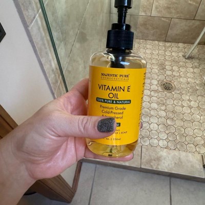 [This review was collected as part of a promotion.] I love this Majestic Pure Vitamin E oil. It’s been very helpful for me. My skin and scalp were getting dry from using warm water and with winter coming, but after applying this oil after showering, washing or cleaning, I can really feel moisture returning to my skin, scalp, hair, and nails. The bottle size is perfect. Easy to carry and great for traveling. I highly recommend it.