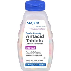 Major Calcium Antacid Chewable Tablets, Assorted Fruit Flavors – 150 Ct