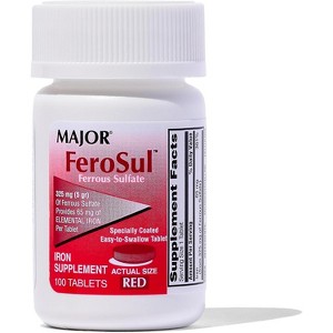 Major FeroSul Ferrous Sulfate 325 mg Red Tablets for Iron Support, Energy, and Healthy Red Blood Cells 100 Ct