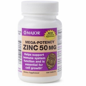 Major Mega Potency Zinc 50 mg Tablets for Immune Support, Skin Health, and Daily Mineral Nutrition – 100 Count