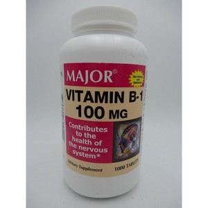 Major Vitamin B-1 100mg Tablets provide essential support for nervous system function and energy metabolism in a large 1000-count supply. Each tablet delivers dependable B1 support for everyday wellness. Designed for long-term use, this product is a convenient option for those who require consistent supplementation. Major ensures trusted quality and value in every serving.