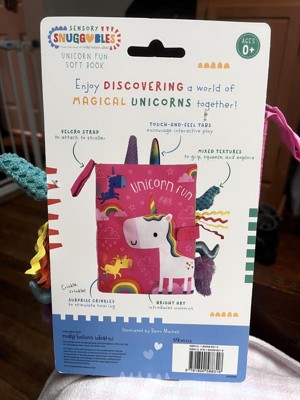 Engage your little one’s senses and curiosity with the Sensory Snuggables Unicorn Fun soft cloth book. Meet each friendly unicorn by exploring, touching, and grabbing their tails and horns, which come in a range of textures, shapes, and bright colors. Trace little fingers over the crinkly cover to stimulate hearing and enjoy discovering a world of magical unicorns together!