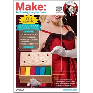 Make, Vol 13 is our special magic issue, loaded with enough tricks to keep your friends and family entertained and mystified for months. Telekinetic pens! Levitating heads! Ghostly blocks! These are just a few of the many terrific magic tricks you'll find in this issue of Make. And as always, you'll find dozens of other projects, ideas, tips, and tricks for doing everything from growing giant vegetables to finding lost screws.