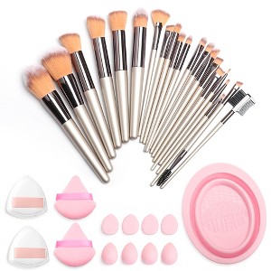 Comprehensive Makeup Brush Set : This set includes 21 makeup brushes and a set of powder puffs . In addition, we also prepare a silicone facial-pack brush,a sponge egg set, silicone lip brush,brush cleaning egg,silicone facial cleansing brush,Eyelash Curler and Eyebrow Scissors. This set is a good choice for beauty lovers.