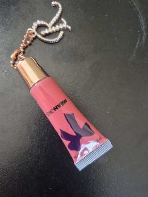 A: The lip gloss comes with a rose gold keychain and charm.