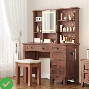 Enjoy a generous 42.17" vanity desk with a visible glass tabletop, letting you quickly find your favorite makeup and accessories. Perfect as a makeup table or bedroom vanity for beauty lovers seeking organization and style, Spacious Vanity Desk with Glass Top.