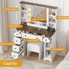 - Ample Storage Capacity: With 6 drawers of varying sizes, 4 open shelves, 2 cabinets, 3 makeup trays and a large desktop, this makeup vanity can organizes everything from cosmetics to hair tools for your daily routine