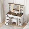 Makeup Vanity Desk, Vanity Table with Mirror and Lights, Dressing Table with Cushioned Stool& Charging Station, Makeup Vanity Table with 6 Drawers and 2 Cabinets for Bedroom