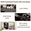 - Convenient Charging Station: Equipped with standard plug sockets and USB ports, this vanity with charging station allows you to charge your beauty devices, cell phones, and hair tools. Say goodbye to cluttered cords—perfect for busy mornings!