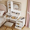 - Ample Storage Vanity Features a spacious top, 2-drawer cabinet, 3-drawer chest & 4 open shelves. Perfectly stores skincare, perfumes, makeup brushes & more. Stay organized effortlessly and find everything you need quickly for a seamless beauty routine!