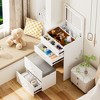- [LOTS OF STORAGE]-This Makeup vanity set with 2 drawers, 1 large cabinet and 6 open shelves, provides plenty of storage space to display jewelry makeup stuff, etc. It built to last, is made with environmentally friendly particleboard.