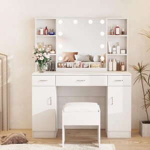 Makeup Vanity Desk with Lighted Mirror, Large Vanity Table Set