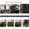 This functional makeup table features a built-in charging station with 2 standard sockets and 2 USB ports on the storage shelf, plus a side metal rack for hair dryers or cups. Measuring 31.5"W x 15.74"D x 55.16"H, it includes a large Hollywood mirror with 3 color modes and adjustable brightness, paired with a comfortable bench. Ample storage comes from the desktop, shelf, 2 drawers, and stool space for cosmetics and essentials. Crafted from 15mm MDF, it’s sturdy with anti-tip device for safety. Easy to install with step-by-step instructions; contact for reliable after-sales service. A timeless, elegant gift for all ages.