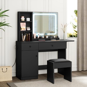 Makeup Vanity with Mirror and LED Light, Large Storage Space with 2 Drawers and Storage Cabinet, Vanity Table Set with Comfortable Stool for Bedroom