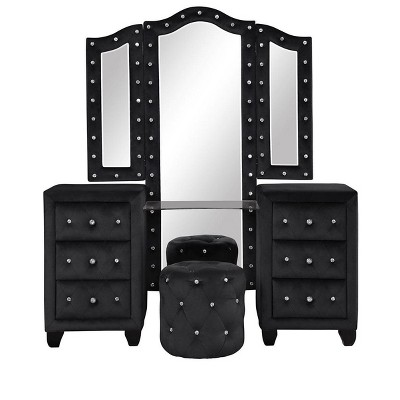Makeup Vanity Desk with Mirror, Makeup Vanity Table with Stool, Dressing Table with Drawers & Open Storage Shelves for Bedroom, 29.2 Inch Black