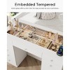 - Durable and Spacious Design: The vanity features 11 smoothly sliding drawers along with a generous 46x12 inch tempered glass surface. The innovative adjustable grid-organizer beneath the glass keeps your beauty products neatly arranged, maintaining a tidy and sophisticated area.