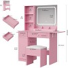 - Professional LED Makeup Vanity Desk - Switch between three lighting modes (cold white/warm white/warm yellow) with ease. The long-press dimming function ensures precise makeup application, ideal for skincare and glam looks. A must-have makeup vanity for flawless beauty lighting