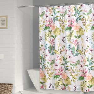 - LEVTEX MALANA COLLECTION: The Malana shower curtain complements the Malana bedding collection. Use it to accessorize any bathroom in your home. This shower curtain features a a lush tropical garden design.