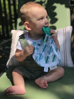 The Munch-It blanket is the perfect item for a teething baby. My son loves to chew on the silicone cactus, while the blanket catches all the dreaded drool. Such a convenient product to bring out and about. I love the cute cactus print as well. Highly recommend!