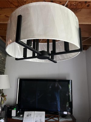 Malen 15.5 Inch 4 Light Semi-Flush with White Fabric Shade in Black