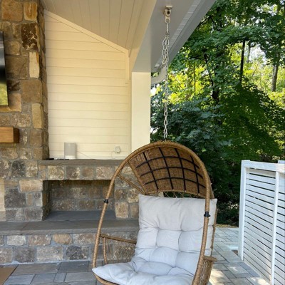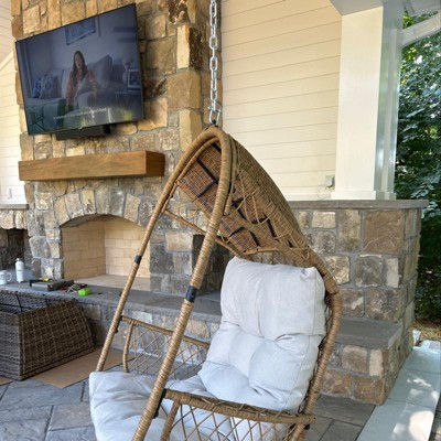 Malia Outdoor Wicker Hanging Chair (Stand Not Included) Brown/Beige - Christopher Knight Home: Weather-Resistant Egg Swing with Cushion