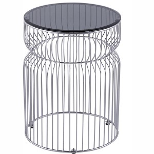 Elevate your space with this modern end table, featuring a tinted tempered glass top and an elegant open metal frame. Available in gold, chrome, or black finishes, it blends seamlessly into contemporary, industrial, or minimalist interiors while adding a touch of sophistication.