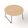Elevate your living space with this Fresh Wood Coffee Table, designed to bring natural warmth and minimalist elegance to modern homes. Featuring genuine oak veneer with clear woodgrain texture, this table offers both visual appeal and lasting durability. The thickened tabletop with rounded corners ensures safety and longevity, while the sleek carbon steel legs provide sturdy support with an eco-friendly sprayed finish. Perfectly sized for small apartments, this internet-famous round coffee table blends seamlessly with sofas in living rooms or makes a stylish addition to bedroom spaces.
