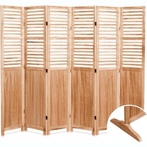 Bring natural elegance and functional design to your home with this 6-panel solid wood folding room divider. Finished in a warm natural tone, it adds character while seamlessly blending with various interior styles. Metal hinges allow effortless folding and compact storage when not in use, making it perfect for creating privacy, dividing spaces, or enhancing your décor.