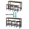 This industrial-chic dining set includes 1 extra-long counter-height table (60.2"L) + 3 stools, crafted from steel frames + durable MDF panels. Designed for small spaces, it doubles as a kitchen island, pub table, or entryway console, with footrests for all-day comfort. Stools tuck neatly under the table (saves 60% floor space!), and 15-minute assembly makes it apartment-friendly.