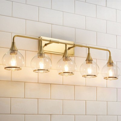 Maliang Gold 5-Light Modern Vanity Light Over Mirror, Wall Sconces with Milky White Frosted Glass Shades, Bulbs Not Included